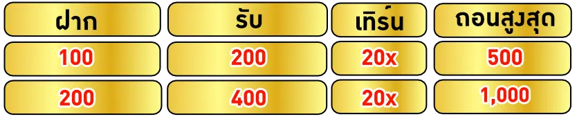 - โบนัสที่ได้รับทำเทิร์น 25 เท่า ถอนได้สูงสุด 10,000 บาท